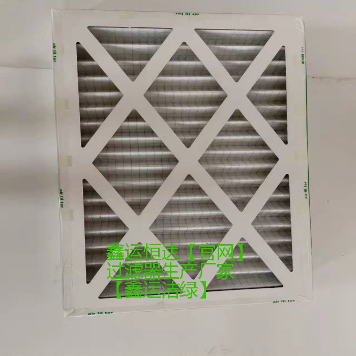 外框为硬纸板,过滤材料为无纺布纤维毡,折叠的过滤材料,后面为金属方孔网作支持,经济实惠。