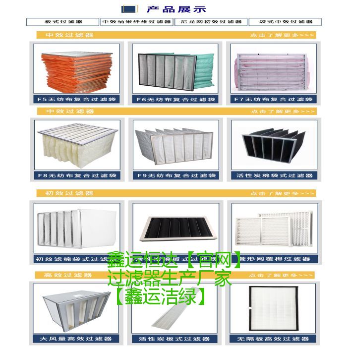 中效过滤器在工业上应用:主要用于中央空调通风系统中级过滤、制药、医院、电子、食品、等工业净化中; 还可做为高效过滤的前端过滤,以减少高效过的负荷,延长其使用寿命; 由于迎风面大,因此空尘量大、风速低,被认为是目前好的中效过滤器结构。